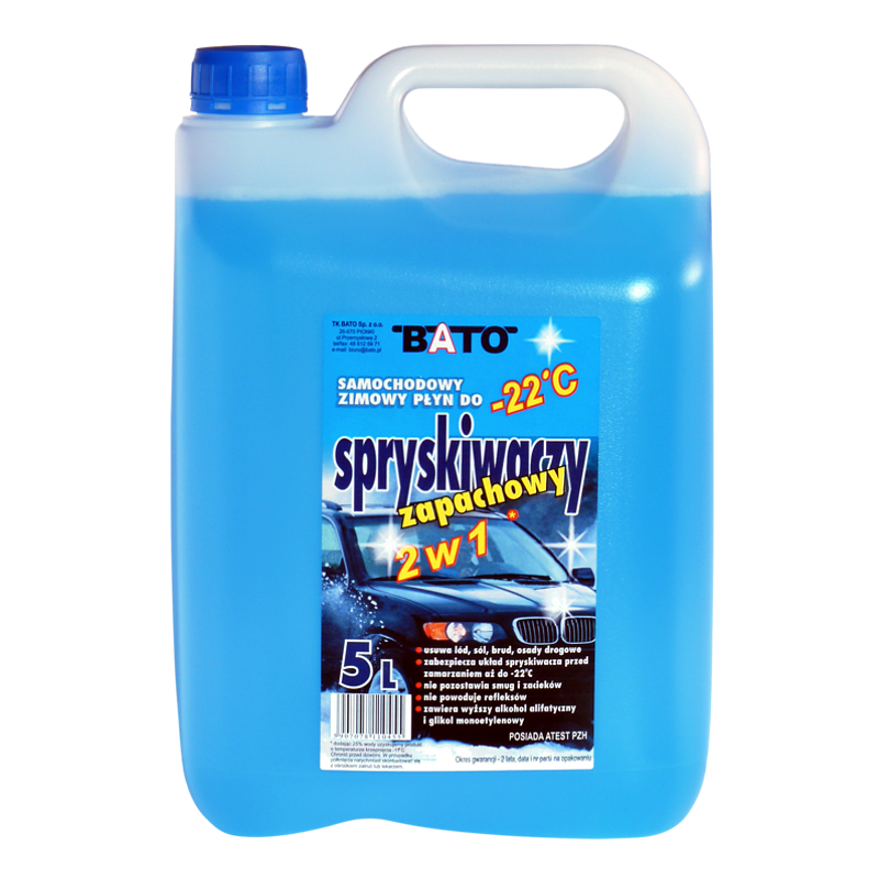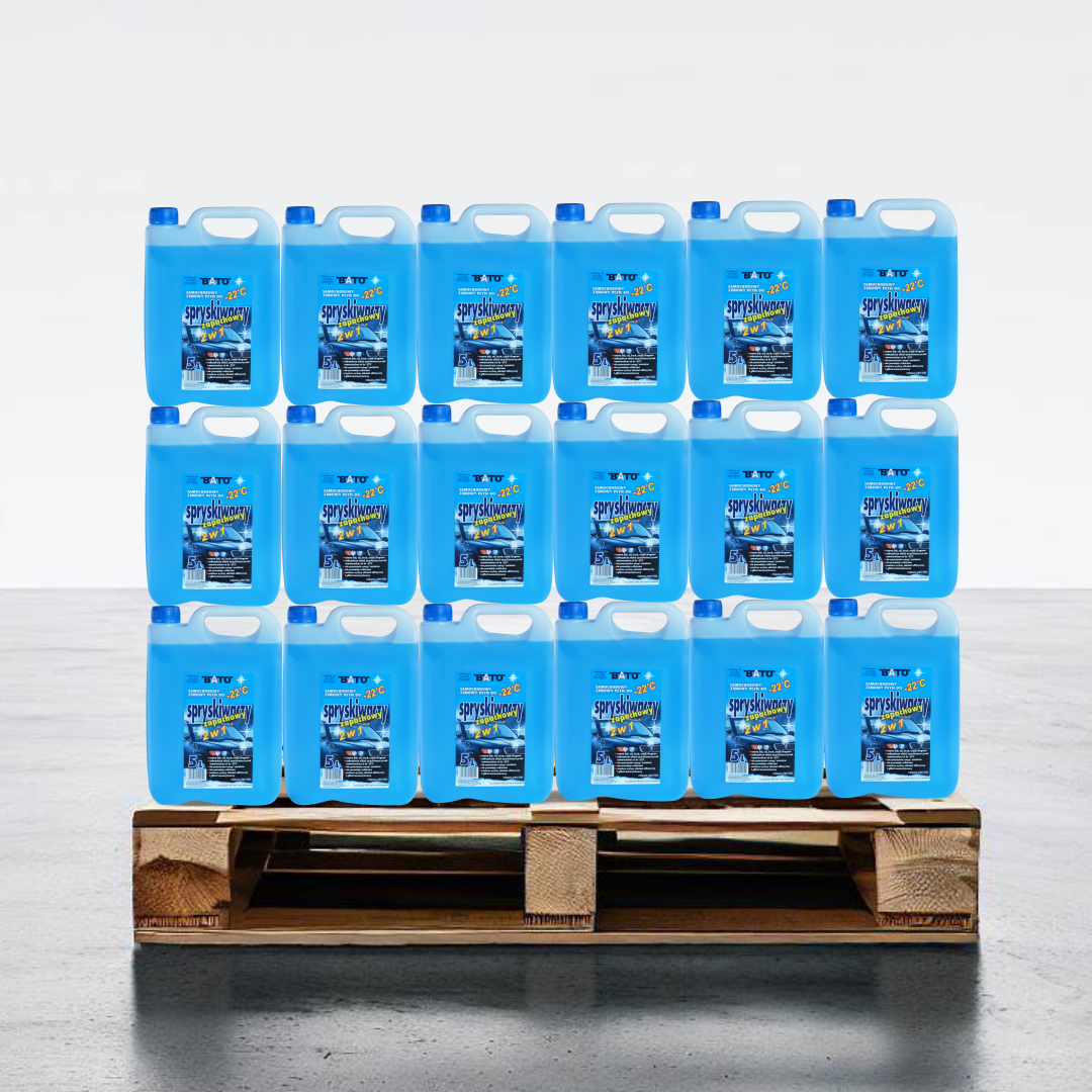 Zimowy płyn do spryskiwaczy o temperaturze krzepnięcia -22 st. C., opakowanie 5L na bazie etanolu ilość 108 szt. na palecie.